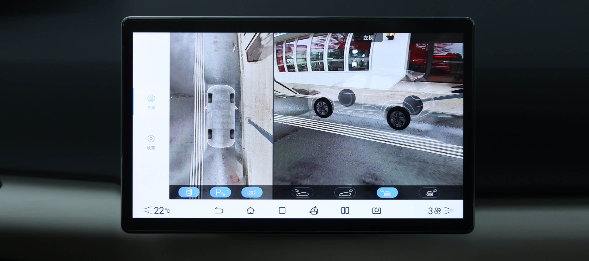 Hình ảnh toàn cảnh 3D trong suốt, nhìn rõ không điểm mù và đỗ xe dễ dàng trong không gian hẹp.