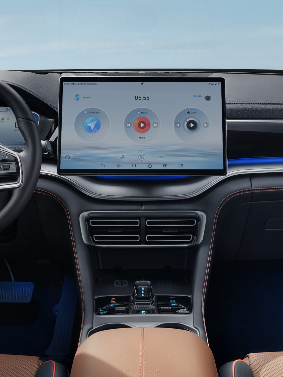 BYD SEALION 6 lấy cảm hứng từ vẻ đẹp của đại dương được thể hiện lên cần số pha lê tinh xảo. Các nút chức năng xung quanh tăng thêm tính thẩm mỹ tổng thể