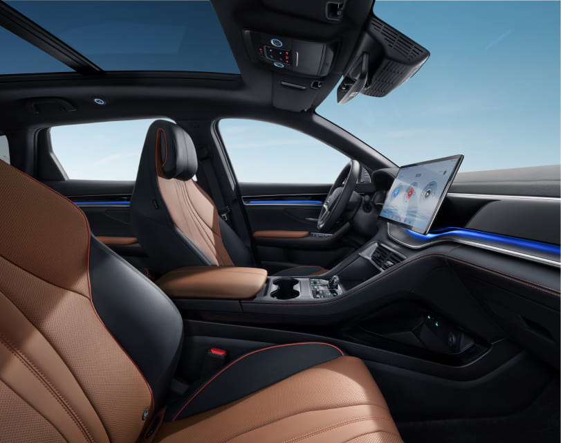 Nội thất của BYD SEALION 6 có thiết kế mang phong cách tương lai, nổi bật với bảng điều khiển trung tâm, có ngăn chứa đồ hai tầng kết hợp giữa tính thực dụng và sự thanh lịch.